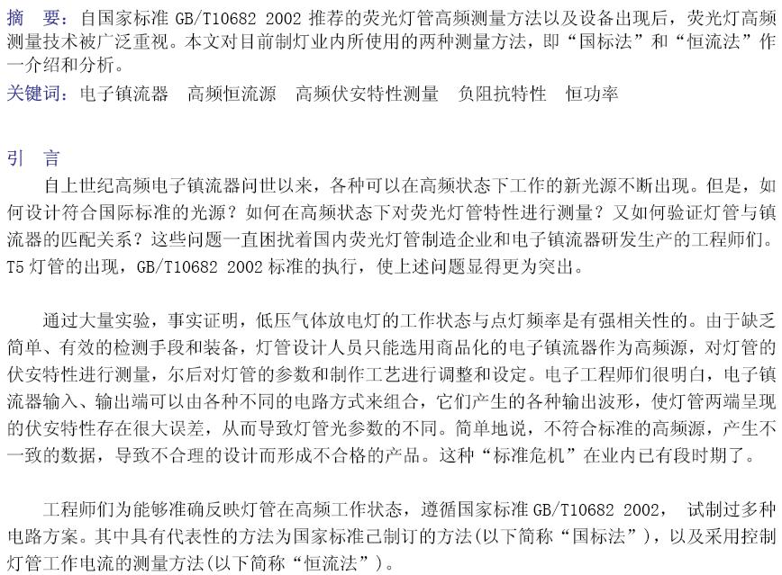 熒光燈管高頻伏安特性測量