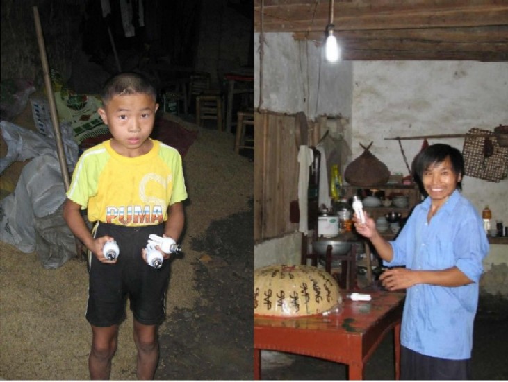 老表雙手接過(guò)節(jié)能燈 心里樂(lè)滋滋
